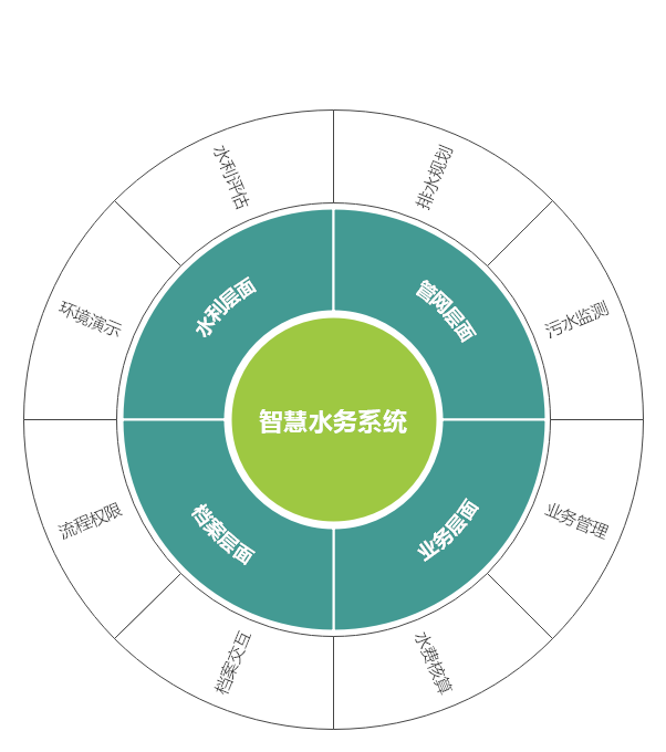- 人才--借助信息化手段,提升水务工作者的业务水平,构建有效的工作评价体系。
